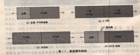 第三種基礎(chǔ)結(jié)構(gòu)是異質(zhì)結(jié)( heteroj unction interfade),如圖1.2Cc)所示,這是由兩種不同材料的半導體接觸形成的結(jié).例如,我們可以用砷化鎵和砷化鋁接觸來形成一個異質(zhì)結(jié).異質(zhì)結(jié)是快速器件和光電器件的關(guān)鍵構(gòu)成要素