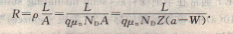 其中ND是施主濃度.A[=z(a一W)]是電流流動的截面積,而w是肖特基勢壘的耗盡區(qū)寬度.