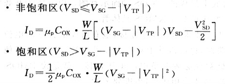 PMOS晶體管中,如圖1.21所示,以源極為基準電位給柵極加負的電壓,在柵氧化膜下方感應出空穴,構成p型反型層(p溝),使電流流過。所以PMOS晶體管的閾值電壓VTP是負值。電流從源極流向漏極時,漏極電流ID取正值,源極—柵極間電壓V SG和源極—漏極間電壓VSD取圖1,22所示的極性時,PMOS晶體管的漏極電流ID由下式給出: