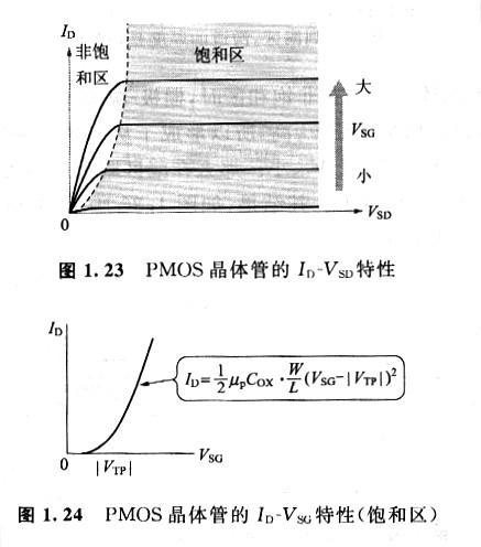 如果采用各電壓的絕對值,那么漏極電流的式(1.1)和式(1.4)也分別適用NMOS晶體管和PMOS晶體管;