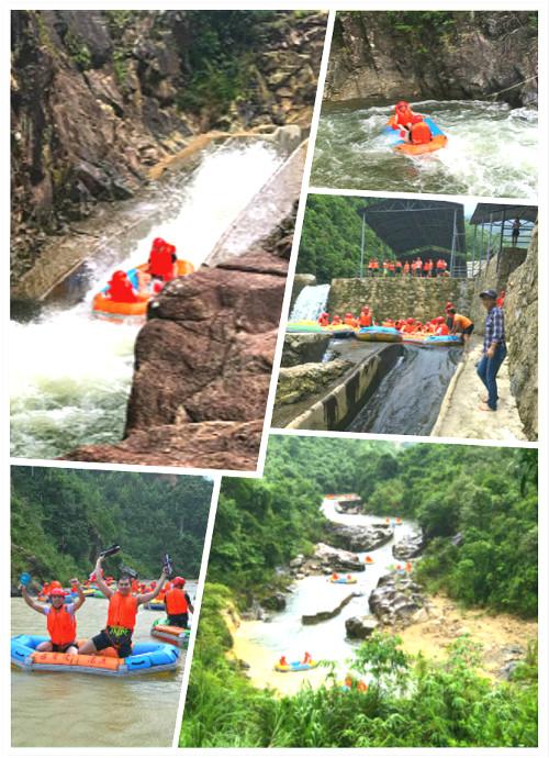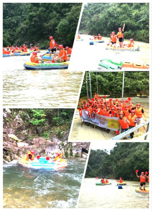 這次出游雖碰上了的各種陣雨,但雨中漂流也別有一番風味,更增添了樂趣。小伙伴們兩兩組合,男女搭配,互幫互助,各組漂流中嬉戲潑水,暴雨中已分不清潑過來是溪水還是雨水。真的勇士,敢于直面潑過來的溪水,敢于正視淋漓的陣雨!