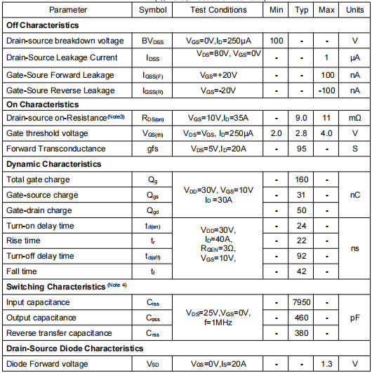KNX2910B采用先進的溝槽技術(shù),漏源擊穿電壓100V, 漏極電流130A ,提供優(yōu)異的Rdson,RDS(ON)值為9mΩ,超低導(dǎo)通電阻,最大限度地減少導(dǎo)通損耗,最小化開關(guān)損耗;低柵極電荷,完全表征雪崩電壓和電流,具有高EAS的良好穩(wěn)定性和均勻性,性能穩(wěn)定可靠;專用于電源切換、硬開關(guān)和高頻電路、不間斷電源;封裝形式:TO-220、TO-263,散熱良好。