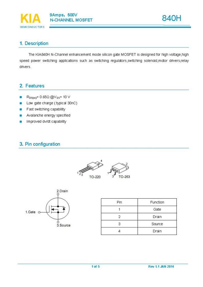 參數: ID(A): 8    BVDSS(V): 500    RDS(ON): 0.8    Qg(nC): 35    Package: TO-220、TO-263
