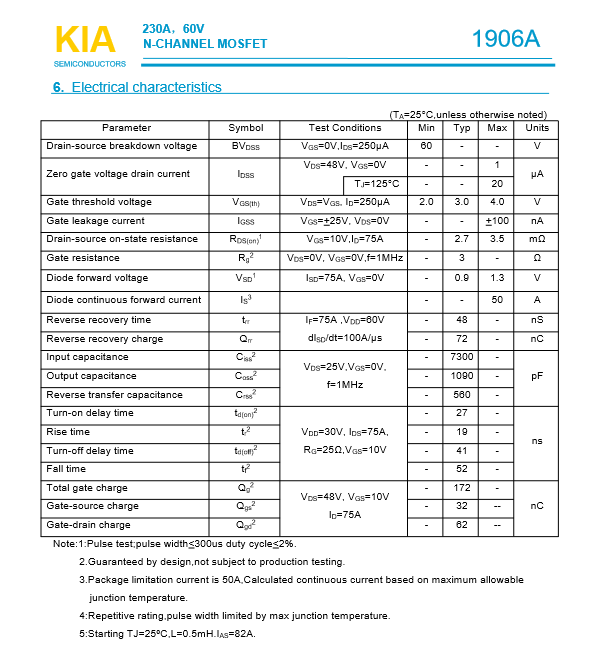參數: ID(A): 230 BVDSS(V): 60 RDS(ON): 0.0027 Qg(nC): 172 Package: TO-247