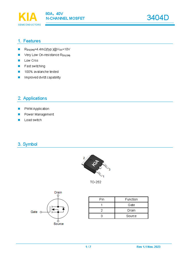 參數: ID(A): 80    BVDSS(V): 40    RDS(ON): 4.4    Qg(nC): 58    Package: TO-252