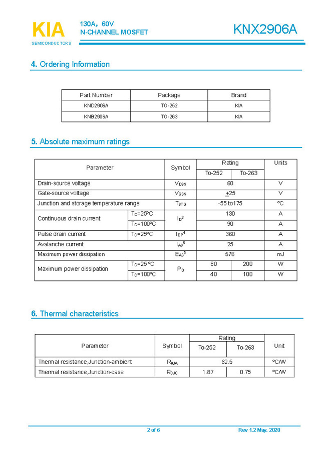 參數: ID(A): 130    BVDSS(V): 60    RDS(ON): 5.5mΩ    Qg(nC): 66.34    Package: TO-252.TO-263