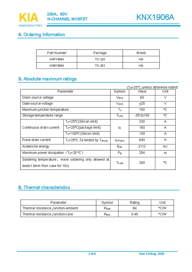 參數(shù): ID(A): 230 BVDSS(V): 60 RDS(ON): 2.2mΩ Qg(nC): 182 Package: TO-263.TO-220