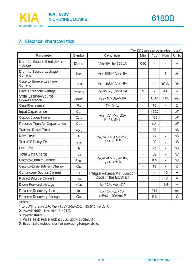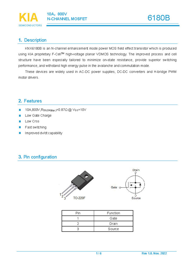 參數: ID(A): 10    BVDSS(V): 800    RDS(ON): 0.87Ω    Qg(nC): 32    Package: TO-220F
