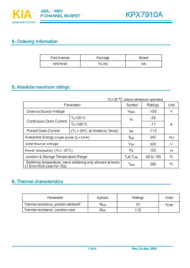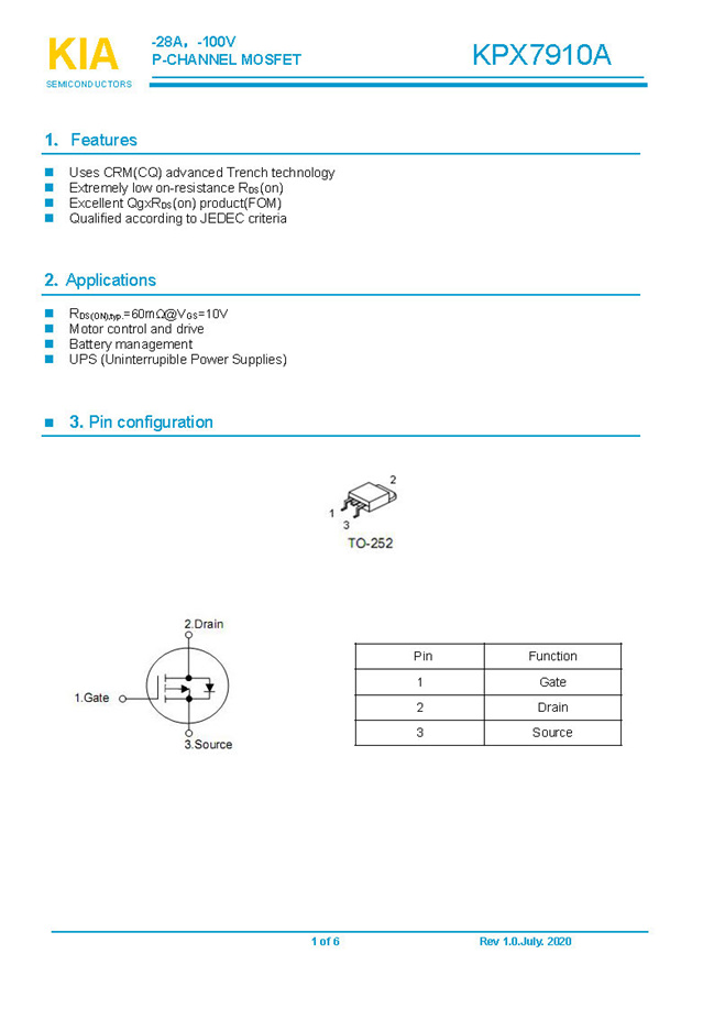 參數: ID(A): -28    BVDSS(V): -100    RDS(ON): 60mΩ    Qg(nC): 52    Package: TO-252