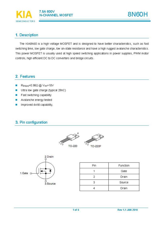 參數(shù): ID(A): 7.5 BVDSS(V): 600 RDS(ON): 1.2 Qg(nC): 29 Package: TO-220、TO-220F