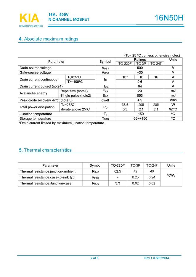 參數: ID(A): 16    BVDSS(V): 500    RDS(ON): 0.38    Qg(nC): 45    Package: TO-220F、TO-3P、TO-247